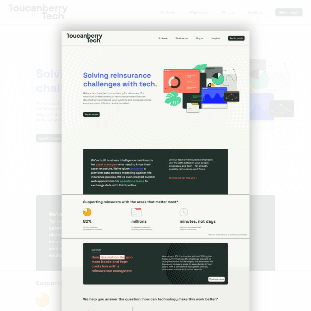 Toucanberry Tech is a boutique software consultancy specialising in Reinsurance. They take their customers on a journey from manual process, disparate systems, unorganised data to automation, cohesive tech, and digital innovation.