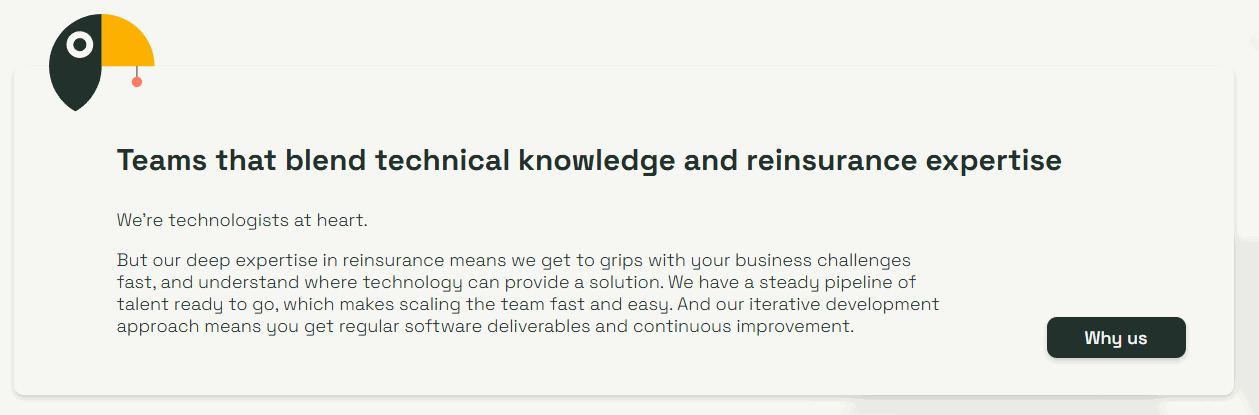 Toucanberry Tech is a boutique software consultancy specialising in Reinsurance. They take their customers on a journey from manual process, disparate systems, unorganised data to automation, cohesive tech, and digital innovation.
